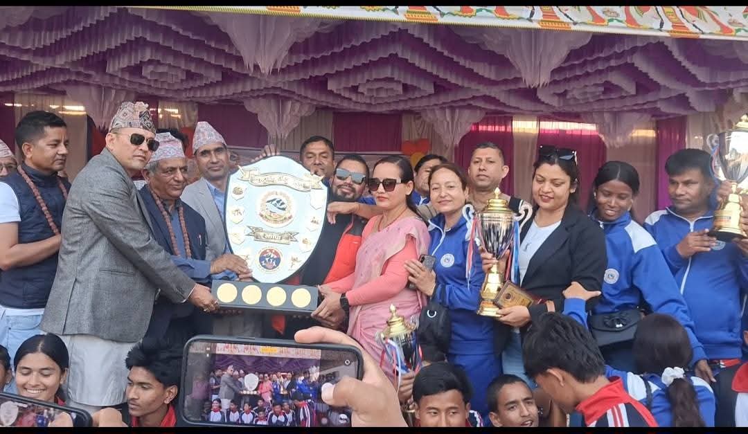 बिर्तामोड। १६ औं झापा जिल्लास्तरीय राष्ट्रपति रनिङ शिल्ड खेलकुद प्रतियोगिताको उपाधि अर्जुनधारा नगरपालिकाले हात पारेको छ । झापा जिल्ला खेलकुद विकास समितिको आयोजना तथा गौरादह नगरपालिकाको संयोजनमा गौरादहस्थित जनता माध्यमिक विद्यालयको प्राङ्गणमा सञ्चालन भएको प्रतियोगितामा १४ वटा पालिकालाई पछि पार्दै अर्जुनधारा नगरपालिकाले उपाधि हात पारेको हो ...