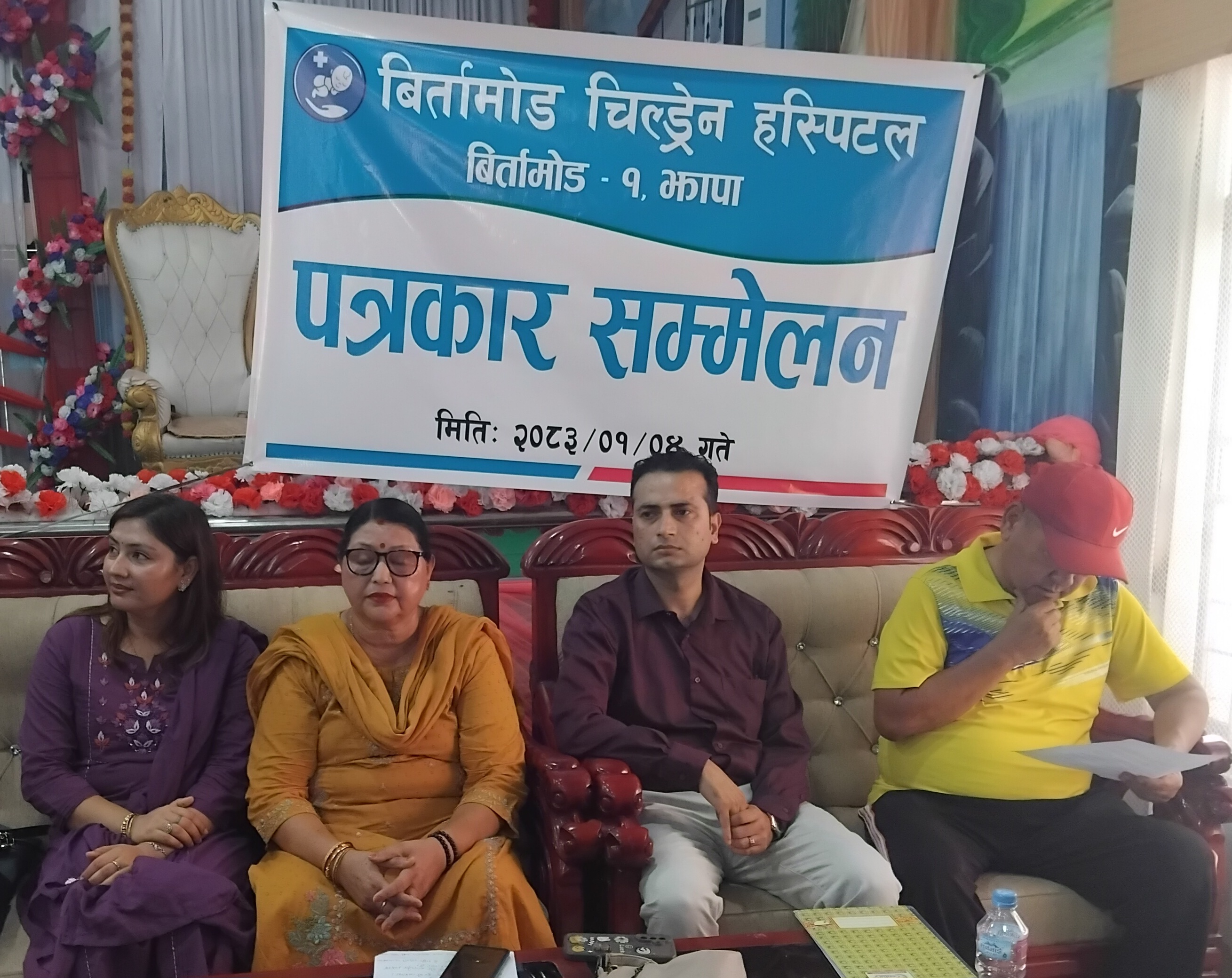 बिर्तामोड। बिर्तामोड चिल्ड्रेन हस्पिटल बिर्तामोड-१ झापाले वालवालिकाहरूको नि:शुल्क स्वास्थ्य शिविर सञ्चालन गर्ने भएको छ। नववर्षको अवसरमा आगामी बैशाख ७ गतेदेखि २१ गतेसम्म वालवालिकाहरूको नि:शुल्क स्वास्थ्य शिविर सञ्चालन गर्ने भएको बिर्तामोड चिल्ड्रेन हस्पिटलकी सिइओ सुजता मैनाली आचार्यले बताइन्। उनले शिविर अवधिभर नवजात शि ...